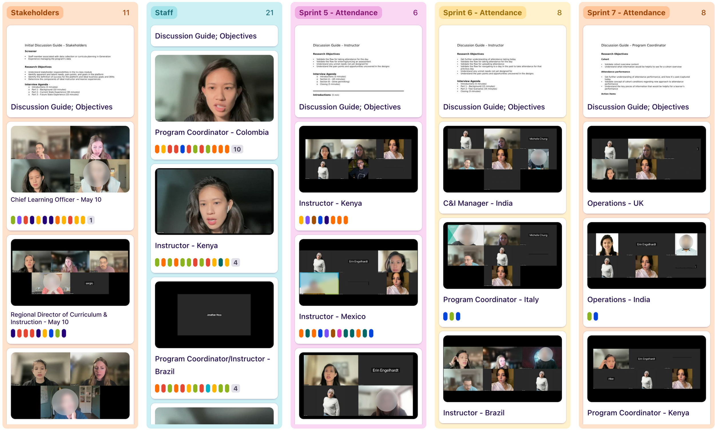 As the design team, we interviewed and ran usability sessions with 80+ educators, administrators, and coordinators across Africa, Asia, Latin America, and Europe. I personally led sessions in both English and Spanish to ensure inclusive, geographically diverse insights.